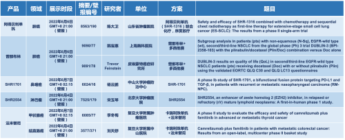 2022 ASCO年会另有5款asiagame医药上市前抗肿瘤创新药的相关研究被接收为壁报,包括SHR-1316、普那布林、法米替尼、SHR-1701和SHR2554,他们的单药或联合方案相关7项研究被接收为壁报,覆盖肺癌、鼻咽癌、淋巴瘤、甲状腺癌和结直肠癌等领域。